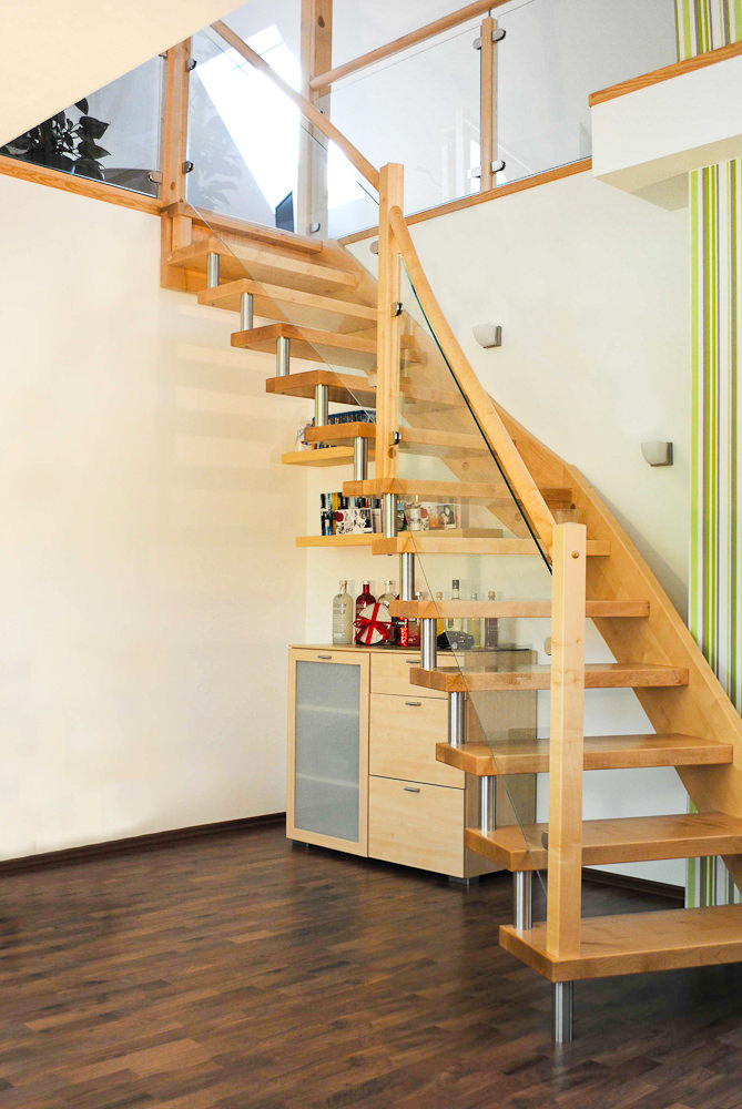 Der Treppenbau ist kein Geheimnis, jedoch auch unter den Tischlern die Sache von Spezialisten. Ein hohes Maß an Raumgefühl, Kenntnisse des traditionellen Treppenbaus und der geltenden baurechtlichen Anforderungen sichern ein optimales Ergebnis. Dabei können wir mit unserer CAD-Planung schnell und anschaulich schon in der Angebotsphase Varianten durchspielen, um Probleme der Realisierung sofort zu erkennen.