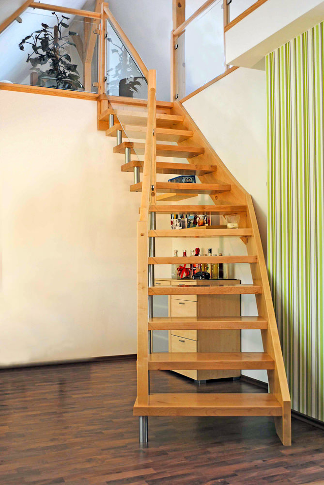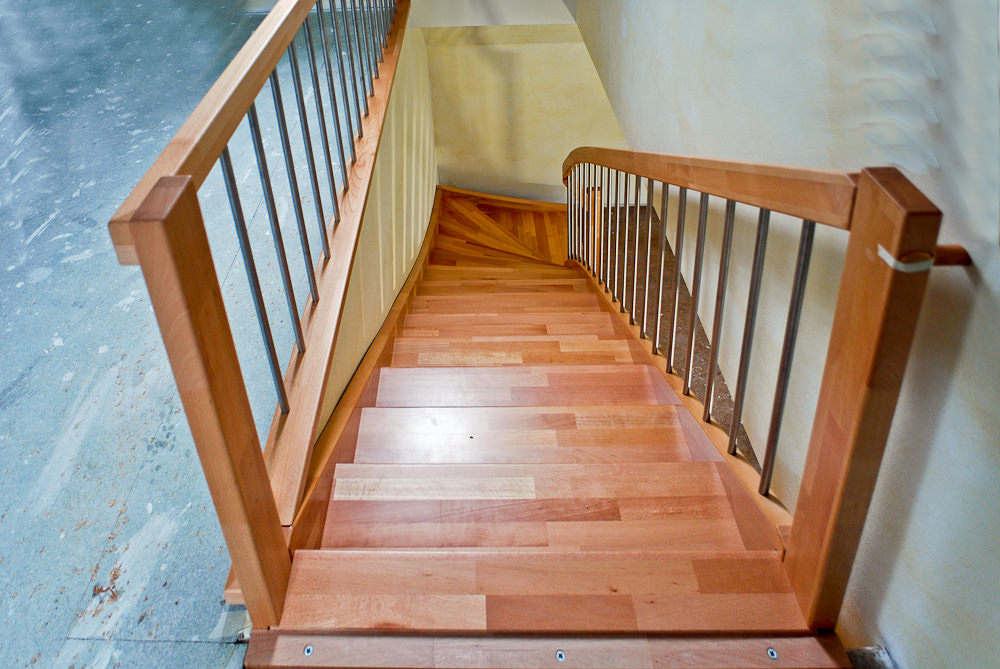 - Buche als der Klassiker des Treppenbaus, aktueller denn je und auf Grund seiner Härte optimal geeignet. Als Kern- oder Wildbuche wird sie auch mit einer kräftigen Farbstruktur verwendet. Die Buche ist ein überall in Mitteleuropa weit verbreitetes in nachwachsenden großen Mengen vorhandenes Holz.