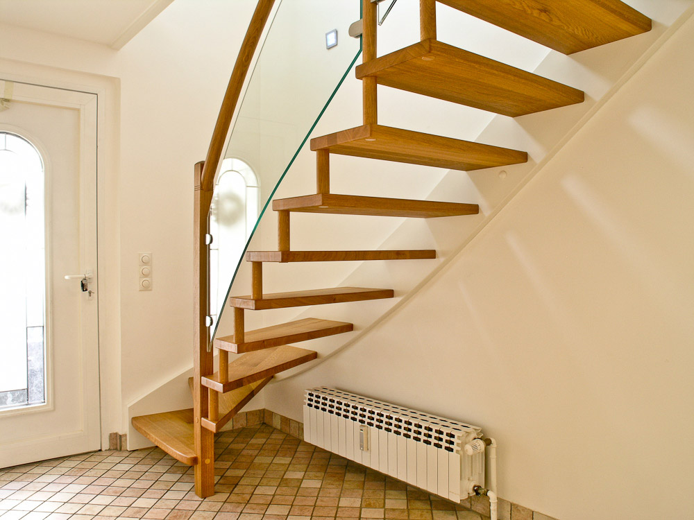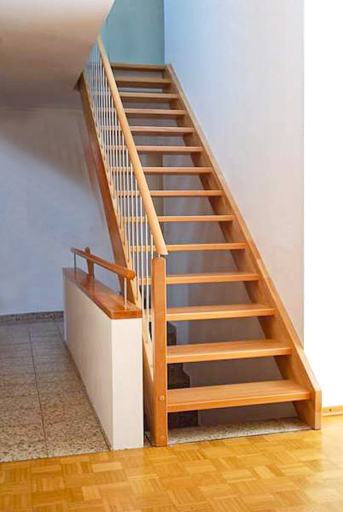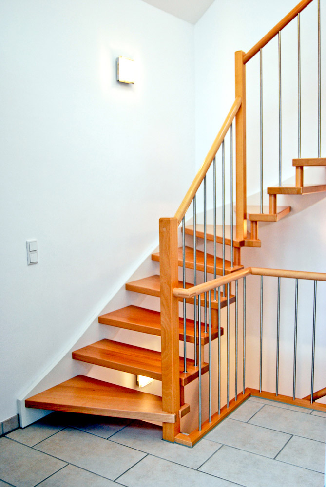 - Kirschbaum und Nussbaum gehören zu den exklusiven Hölzern im Treppenbau. Ihre Schönheit rechtfertigt den hohen Preis, begrenzt jedoch die Verwendung auf Einzelstücke.