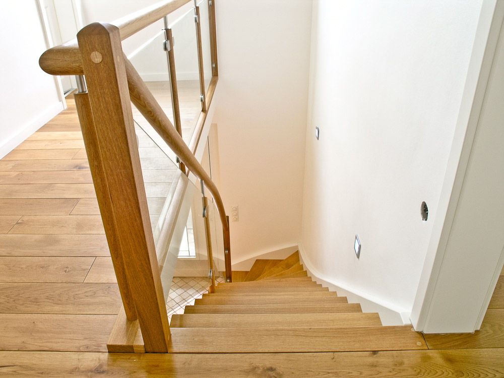 - Eiche nimmt der Schreiner für seine Treppe. Die Eiche hat in der Vergangenheit wegen ihrer Verwendung für kleinbürgerliche Einrichtungen stark gelitten. Jedoch erlebt sie zur Zeit eine Renaissance und ist in Kombination mit einer modernen Wohnarchitektur in klarer unverschnörkelter Verarbeitung ein unschlagbar belastbarer und pflegeleichter Werkstoff.